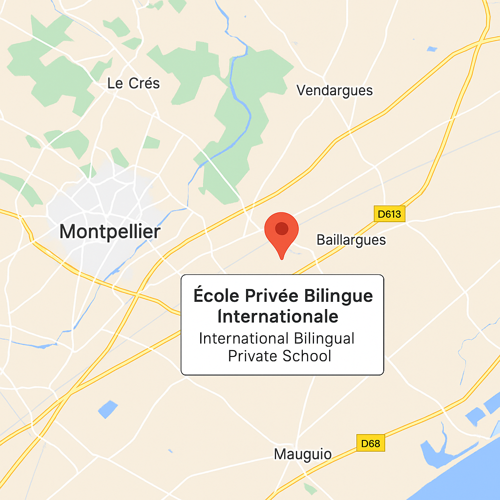 L’école est à 300 mètres de la gare de Baillargues (5 minutes à pied) .